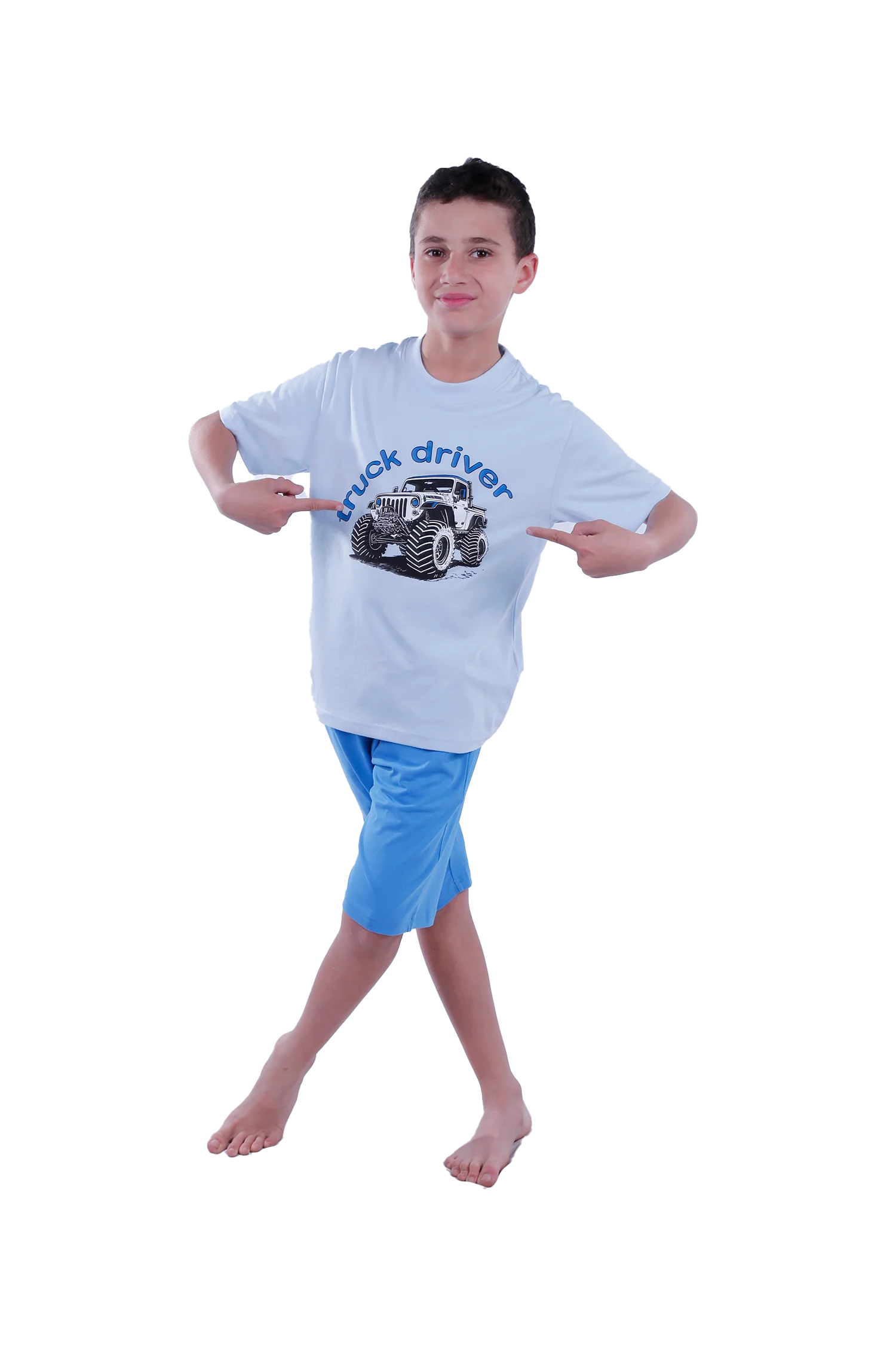 Give your child ultimate comfort with the Boys Short Sleeve Pajama with Shorts and Pants, crafted from 100% Cotton Single Jersey for superior softness and breathability, perfect for sleeping and lounging.