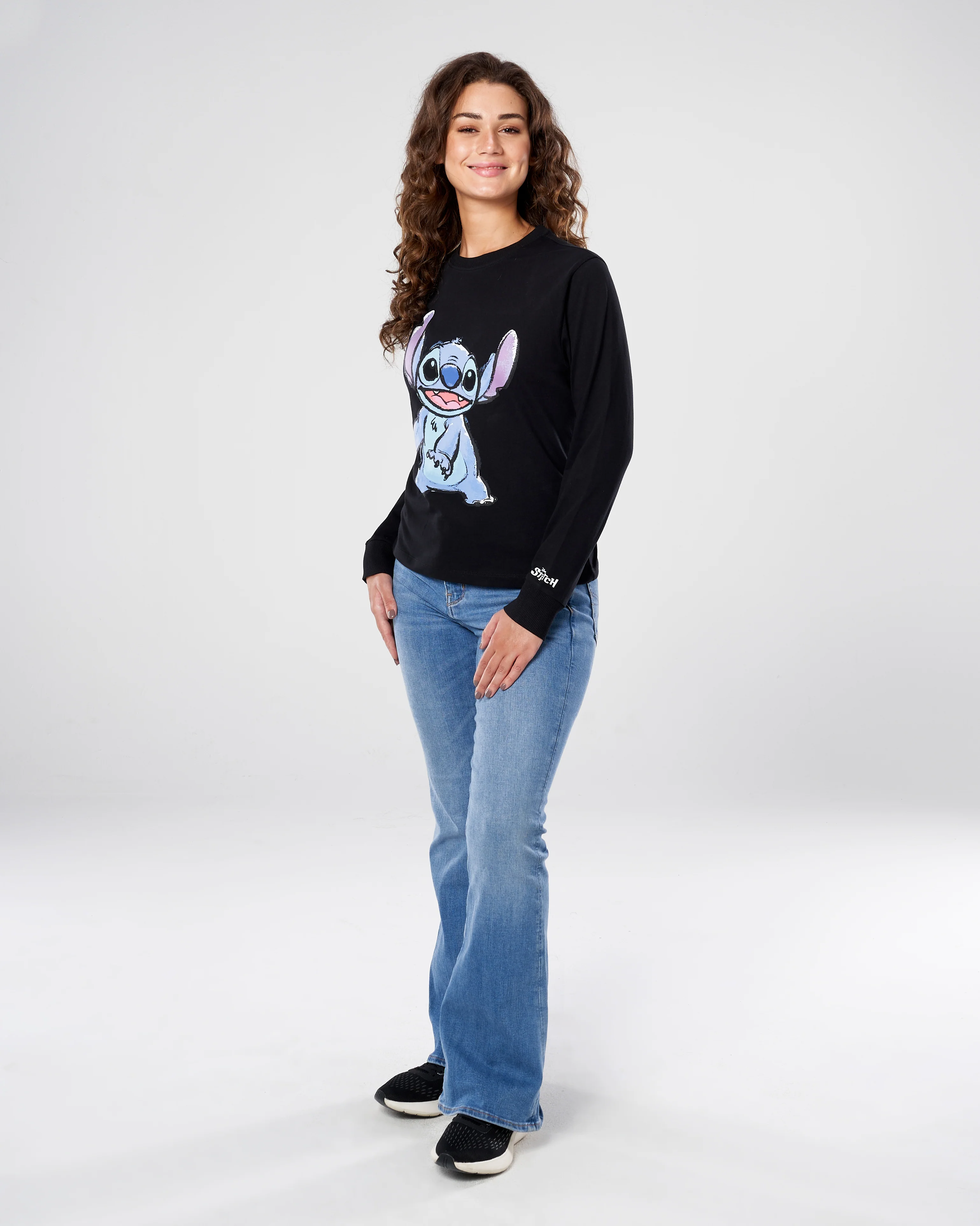 Disney WOMEN STITCH LS BLACK T-SHIRT